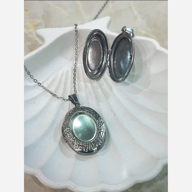 گردنبند لاکت قاب عکس ، جا عکسی مدل بیضی استیل ، رنگ ثابت