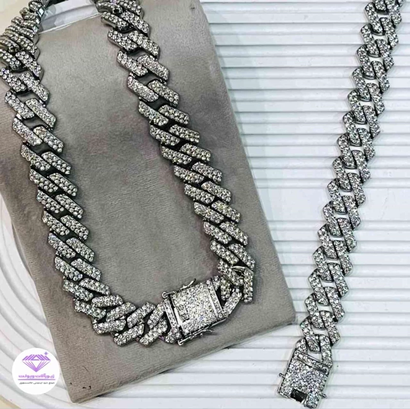 گردنبند و دستبند کارتیر فول نگین قفل کوبایی کد 1019
