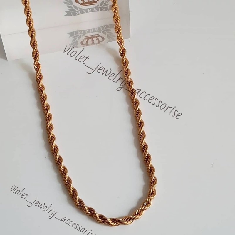 زنجیر طنابی پیچی استیل طلایی و نقره ای 60 سانتی رنگ ثابت و ضد حساسیت