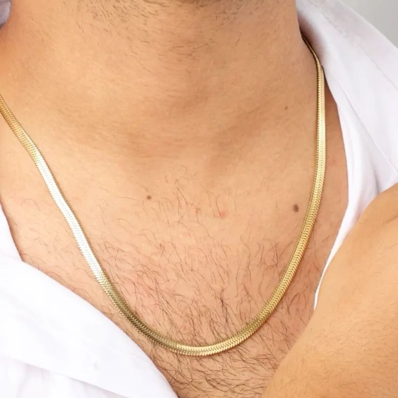 گردنبند مردانه ماری استیل طلایی رنگ ثابت 60 سانتی هرینگبون