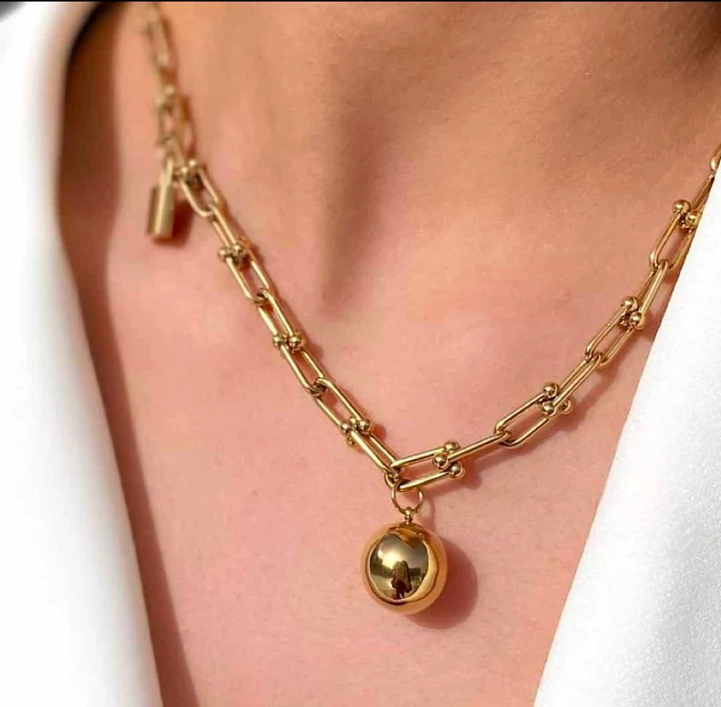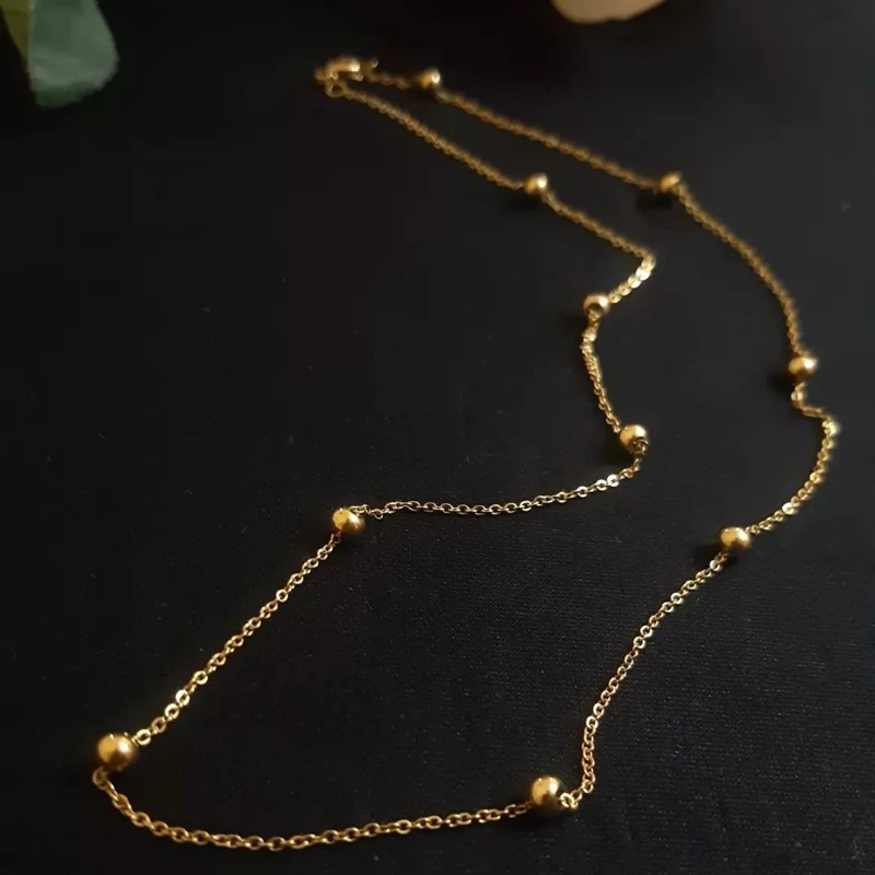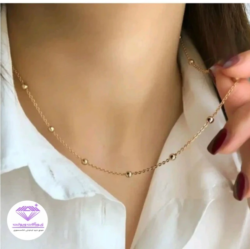 زنجیر گردنی مدل توپی طلایی جنس استیل 45 سانتی رنگ ثابت و ضد حساسیت