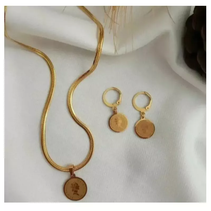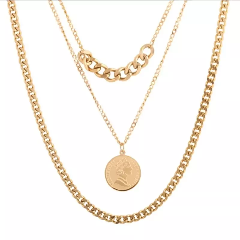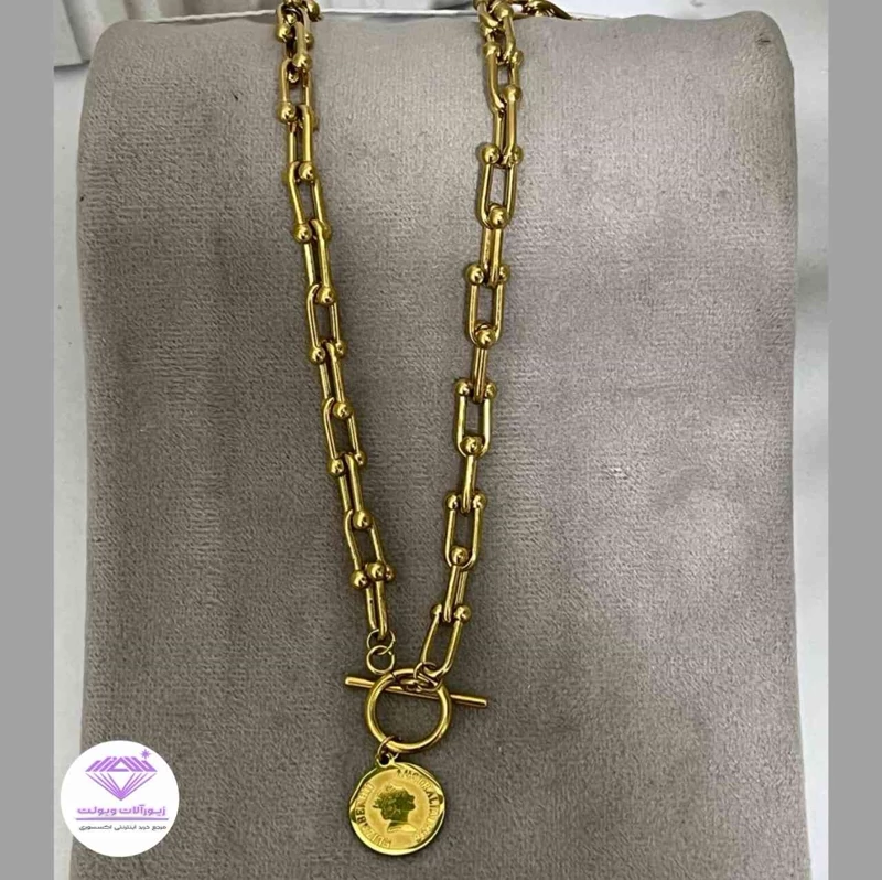 گردنبند دو لاین زنانه با آویزی سکه الیزابت| کد 20100