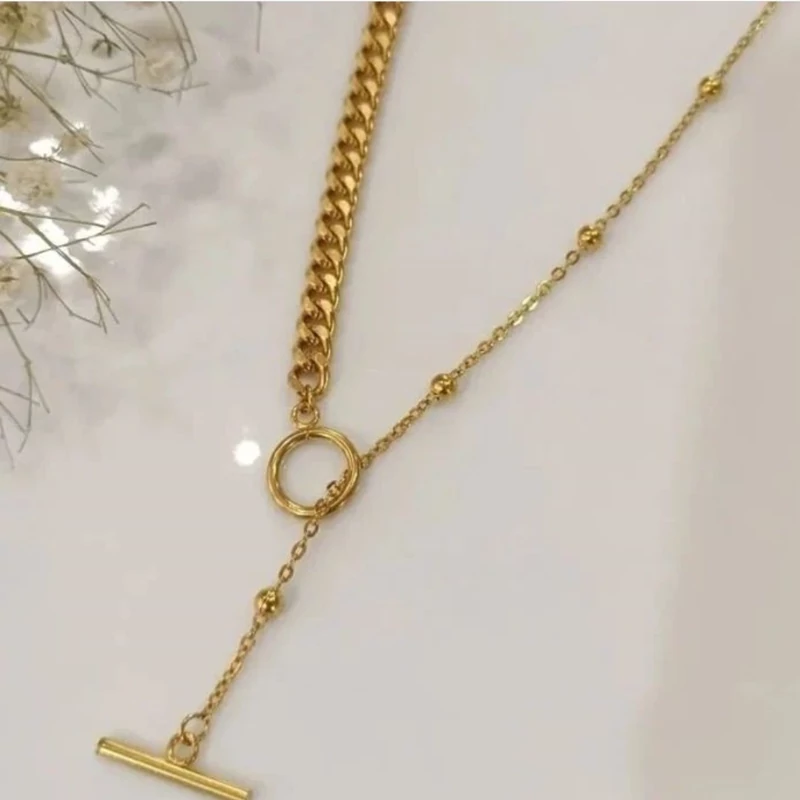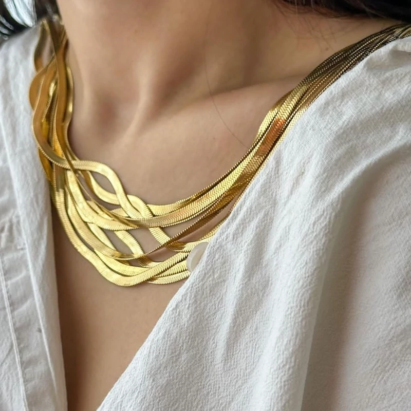 گردنبند بافت زنجیر ی تراشخورده زنانه کاملا مشابه طلا جنس استیل رنگ طلایی کیفیت ثابت و ضدحساسیت