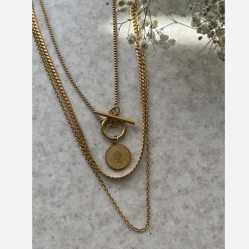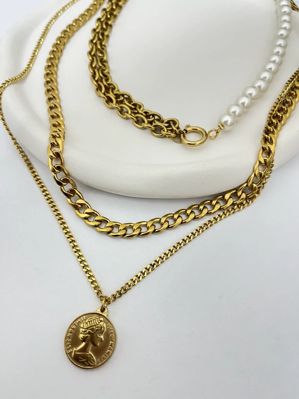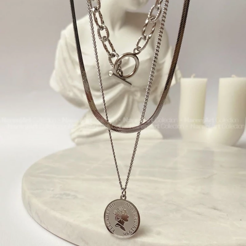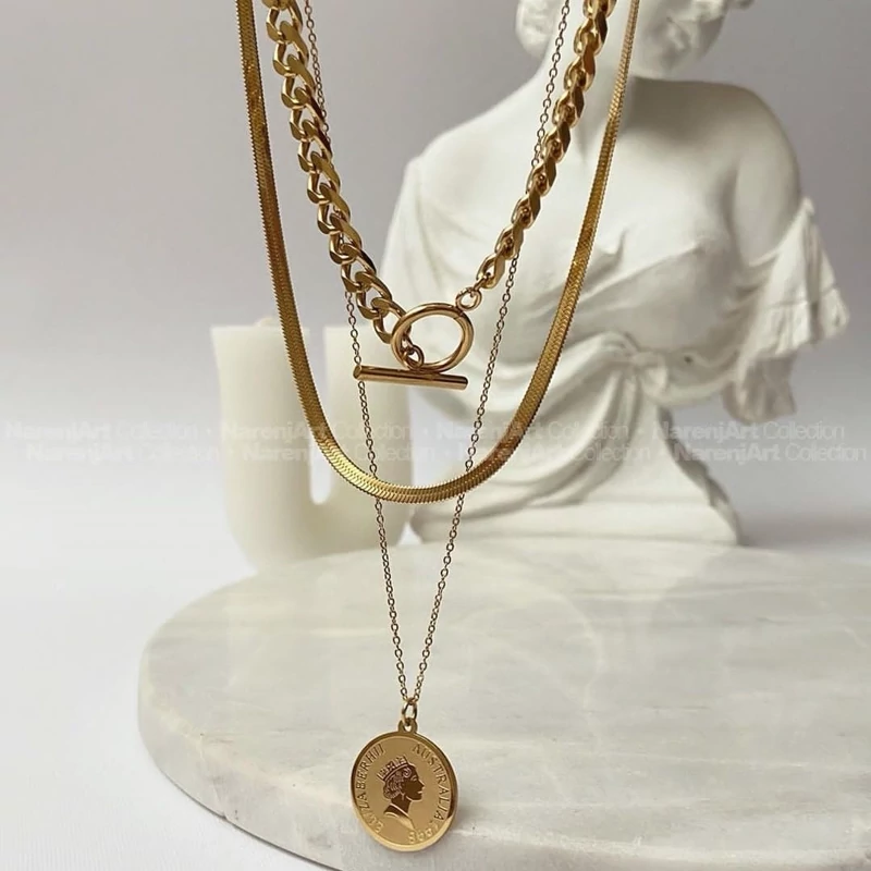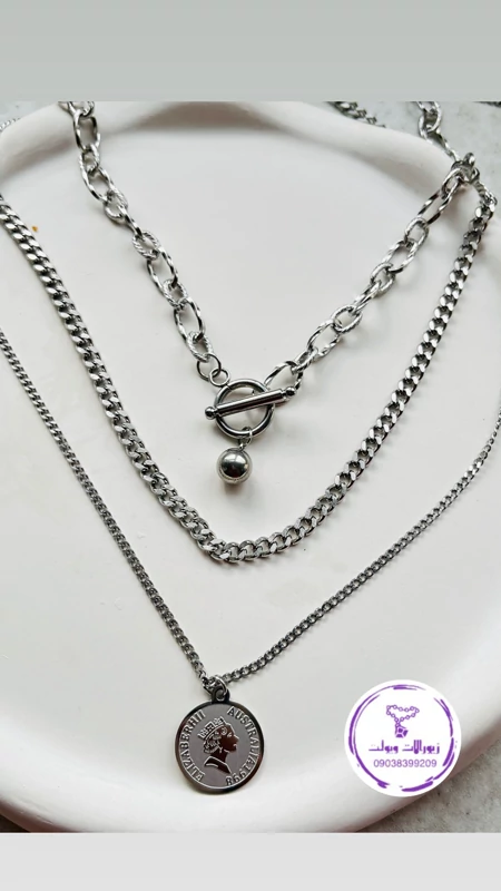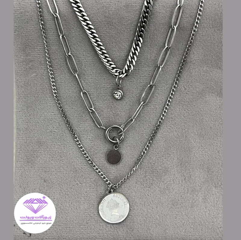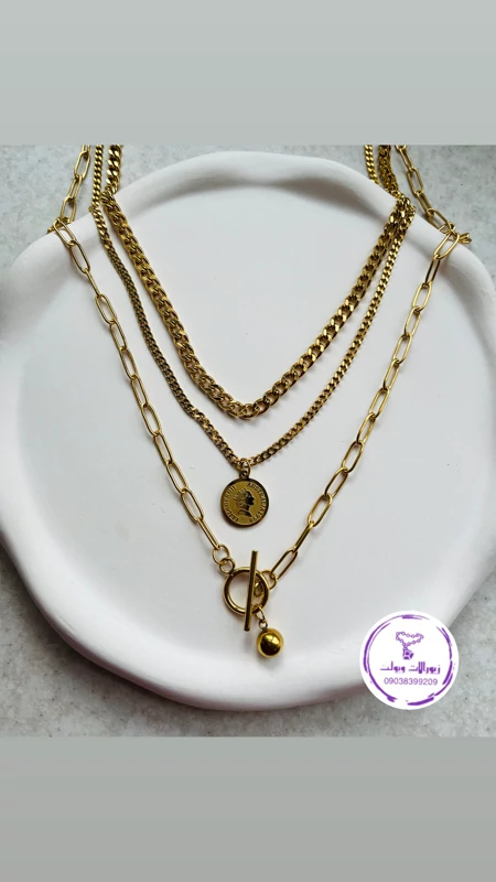 گردنبند زنانه سه رج استیل سکه ای رنگ ثابت ضدحساسیت