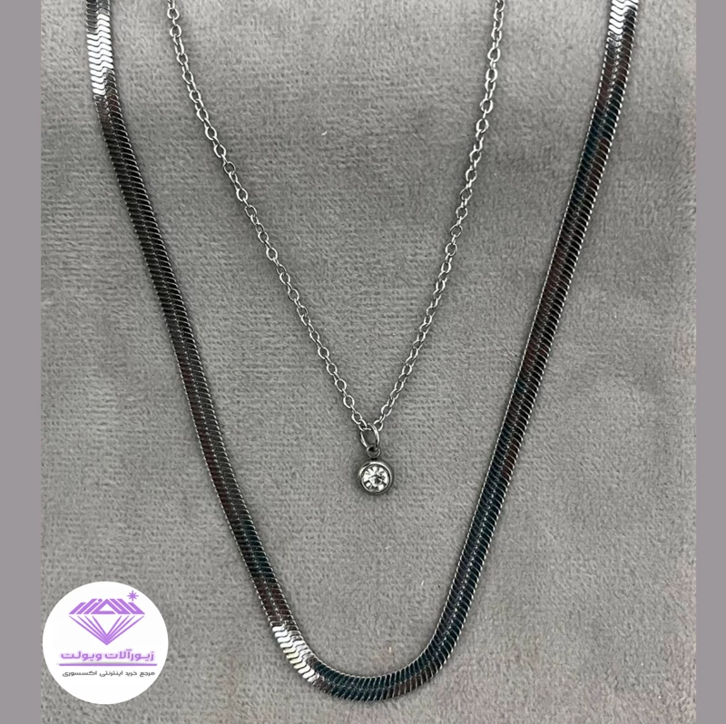 گردنبند زنانه آویز دار دو لاین | کد 20111