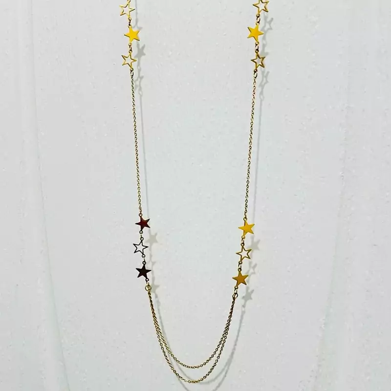 گردنبند(رولباسی) بلند مجلسی کارتیر دو ردیفه شیک استیل رنگ ثابت کد 4001