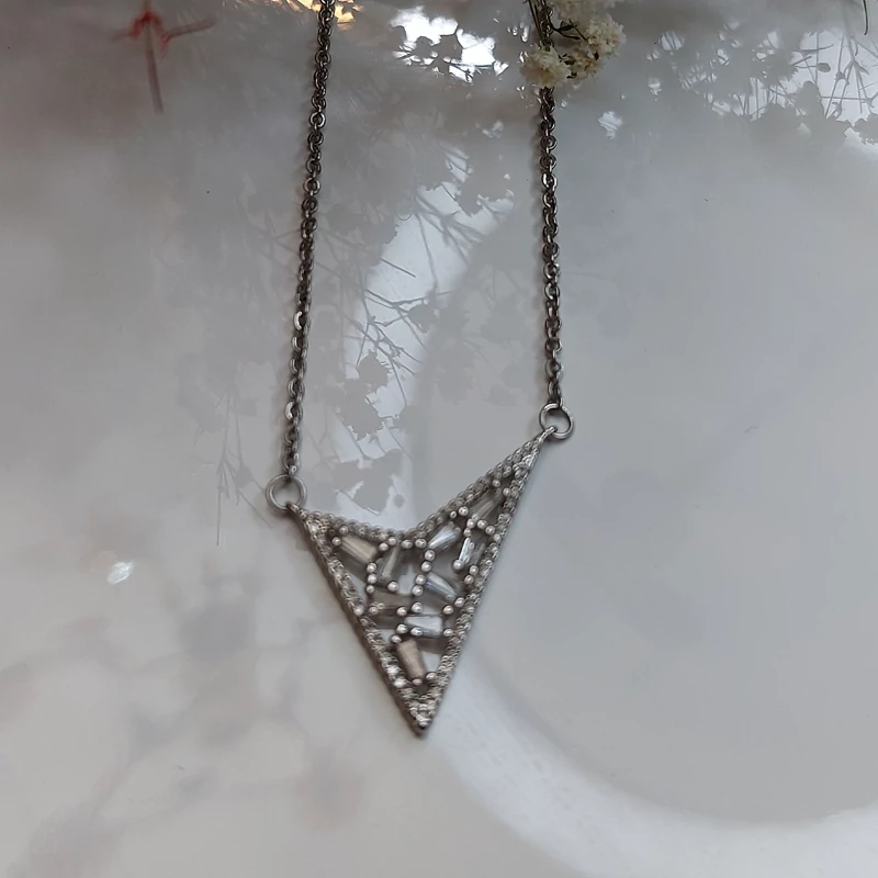 گردنبند زنانه مثلثی نگیندار نقره ای