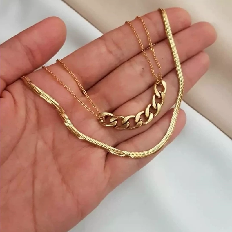 گردنبند دوتایی دخترانه استیل و آبکاری طلا شده رنگ ثابت
