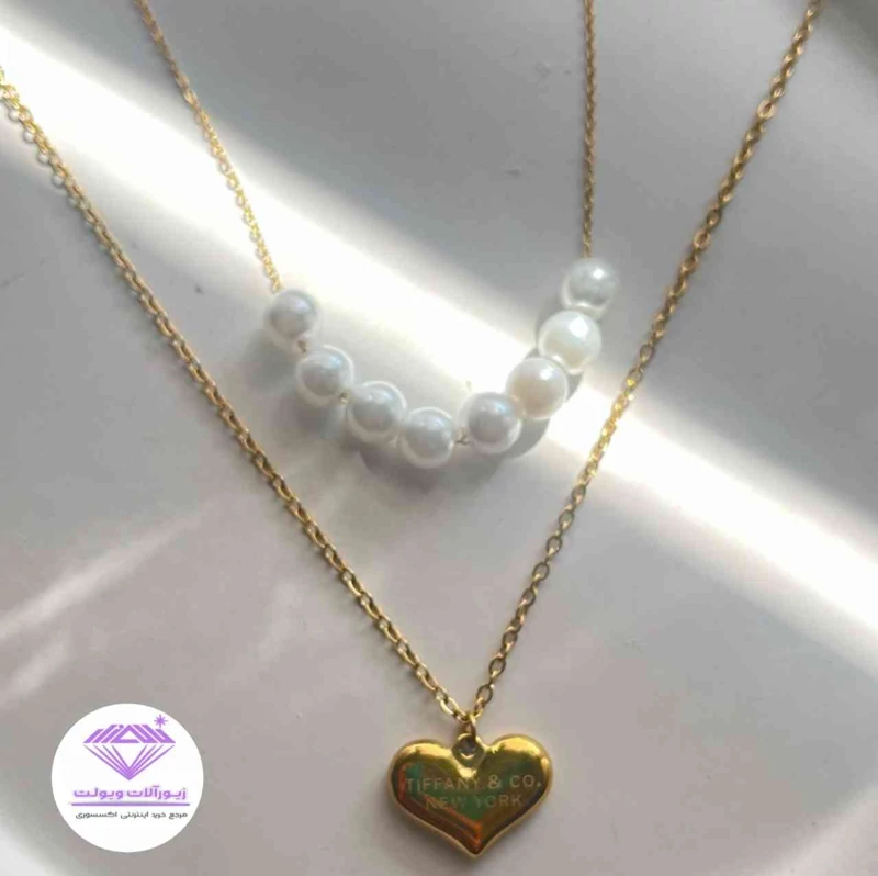 گردنبند زنانه مدل مروارید و قلب تیفانی | کد 2085
