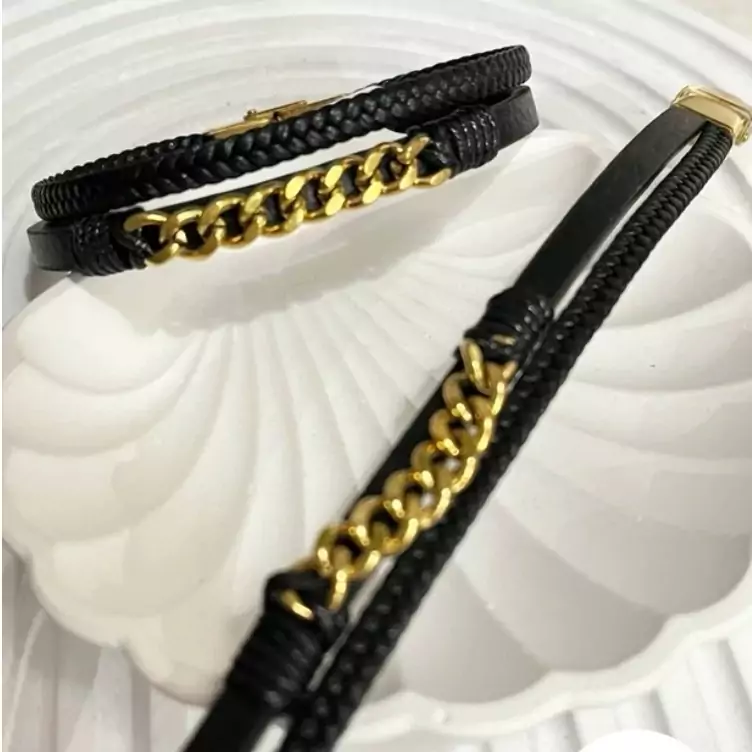دستبند چرمی مردانه پلاک کارتیر مدل 3007