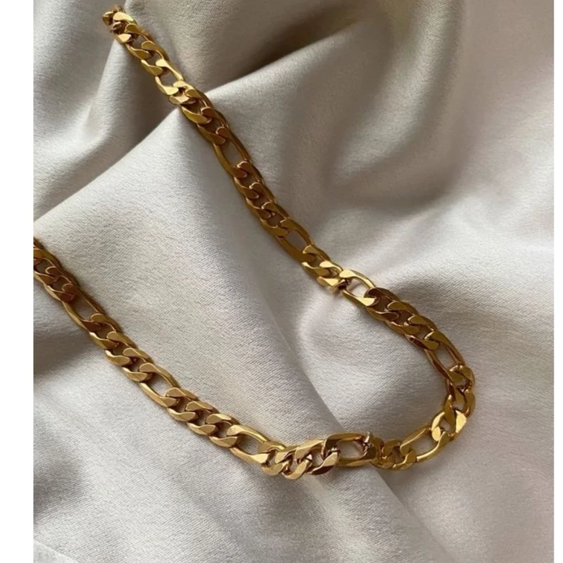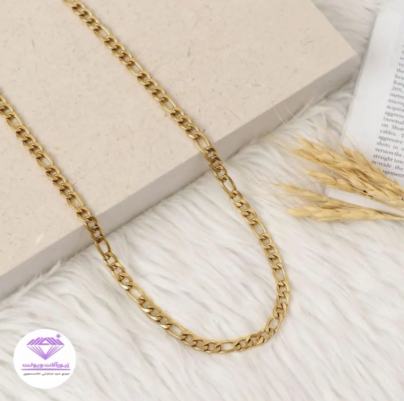 گردنبند زنجیر فیگارو زنانه ،مردانه اسپرت 7میل 50سانت کاملا مشابه طلا جنس استیل رنگ طلایی کیفیت ثابت و ضدحساسیت