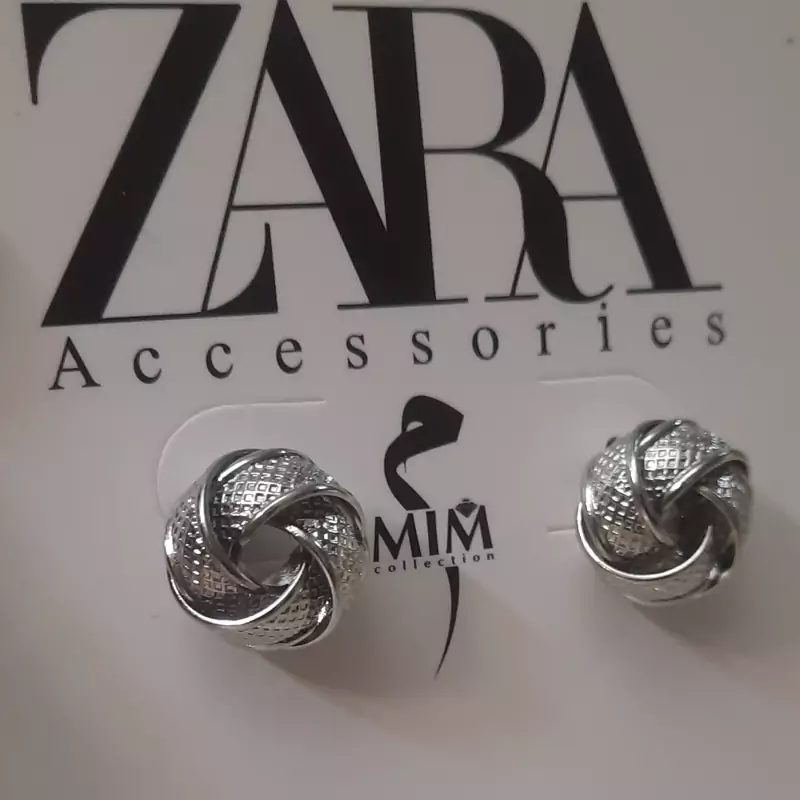 گوشواره میخی نقره ای برند زارا برنجی میخ نقره ضدحساسیت رنگ ثابت کد 5