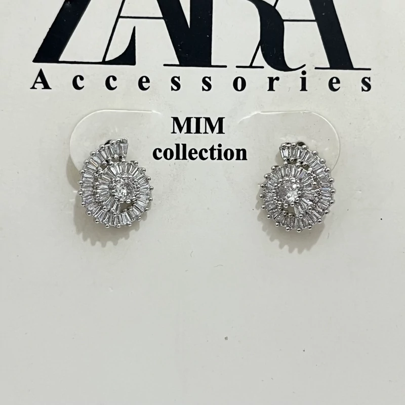 گوشواره میخی نقره ای برند زارا برنجی میخ نقره ضدحساسیت رنگ ثابت کد 4