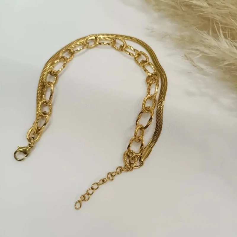 دستبند زنانه دولاین ماری طلایی استیل 18سانتی