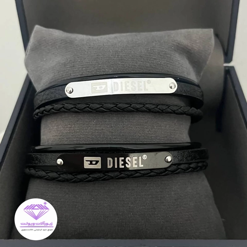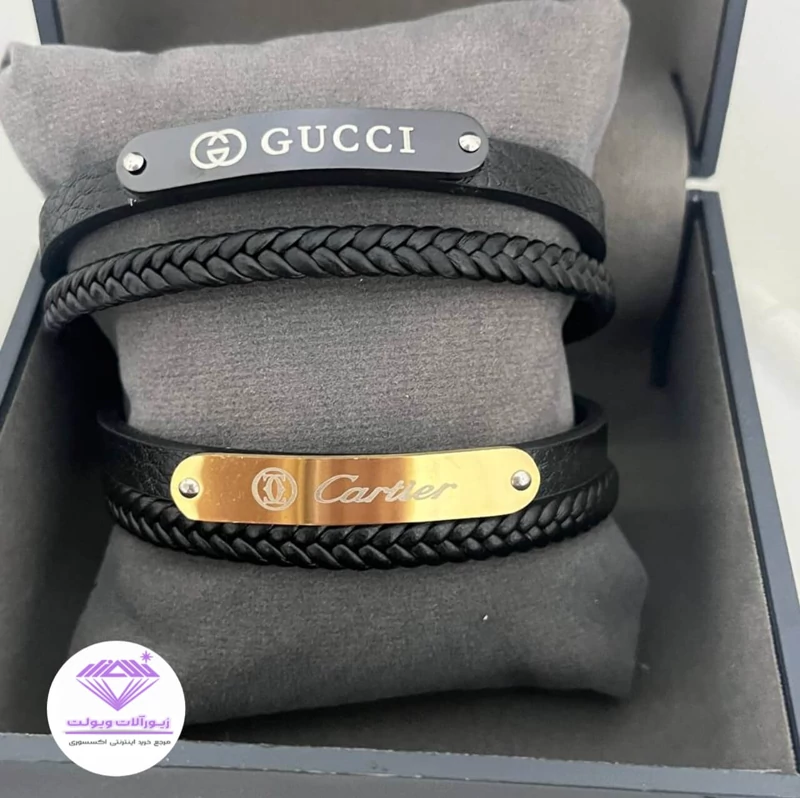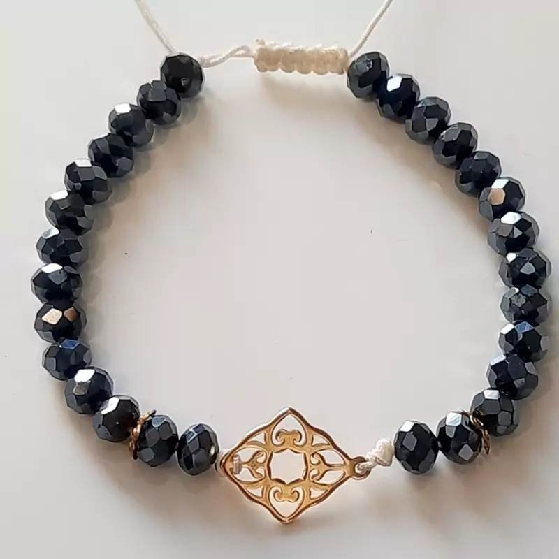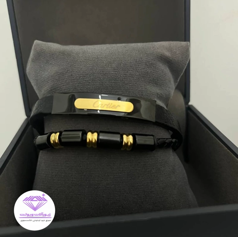 دستبند کریستالی سورمه ای با پلاک طرح اسلیمی استیل فری سایز گره ای