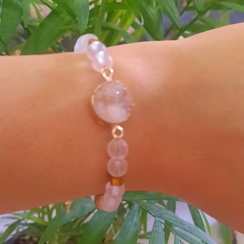 دستبند سنگ اونیکس بی رنگ شیشه ای با پلاک طرح سنگ نمک