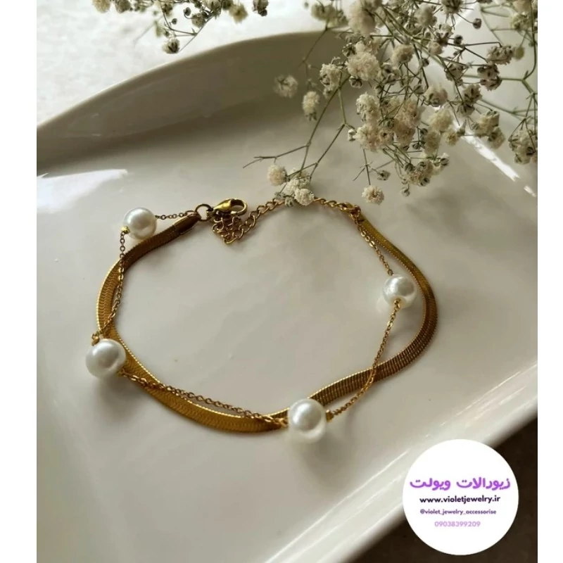 دستبند زنانه دولاین ماری مرواریدی استیل