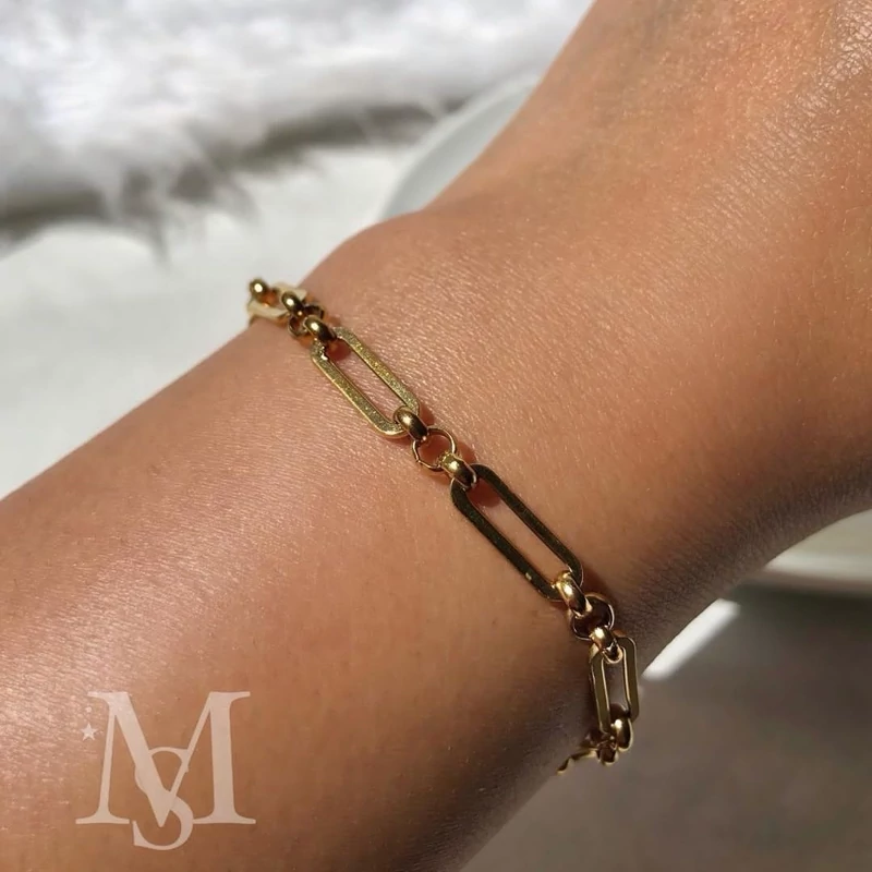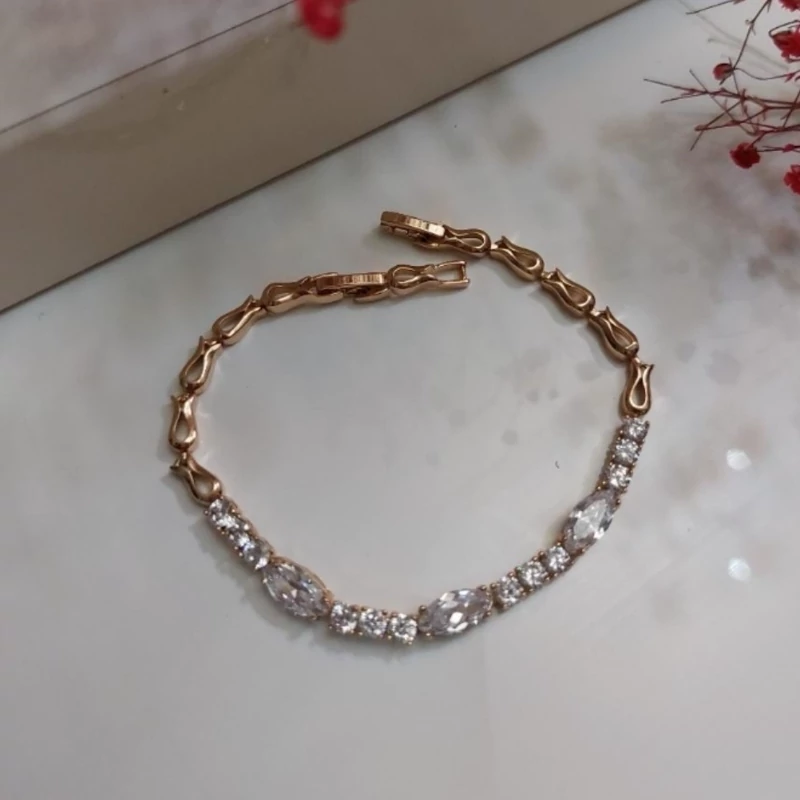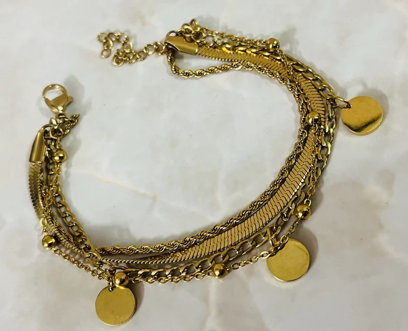 دستبند طرح طلا ظریف و فوق العاده شیک 18سانتی آبکاری طلا استیل و رنگ ثابت
