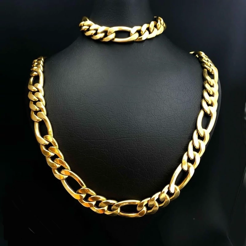 ست گردنبند و دستبند فیگارو استیل طلایی 10میل مردانه