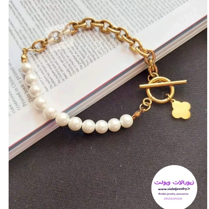 دستبند زنانه دولاین ماری مرواریدی استیل
