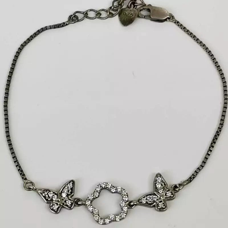دستبند دخترانه و زنانه جنس نقره طرح گل و پروانه وزن 4.3 گرم کد 004