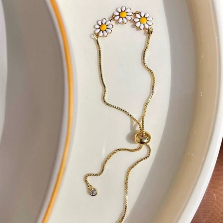 دستبند کرواتی گل بابونه دخترانه استیل طلایی فری سایز