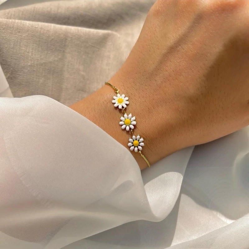 دستبند کرواتی گل بابونه دخترانه استیل طلایی فری سایز