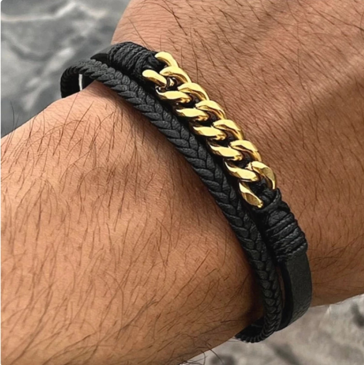 دستبند چرمی مردانه پلاک کارتیر مدل 3007