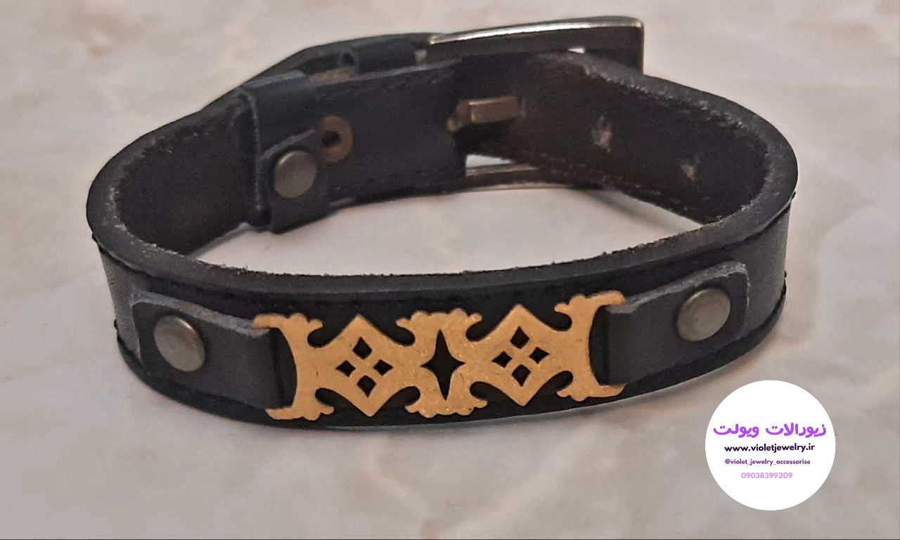 دستبند مردانه چرمی با پلاک نقره اسپرت کد ۰۰۷