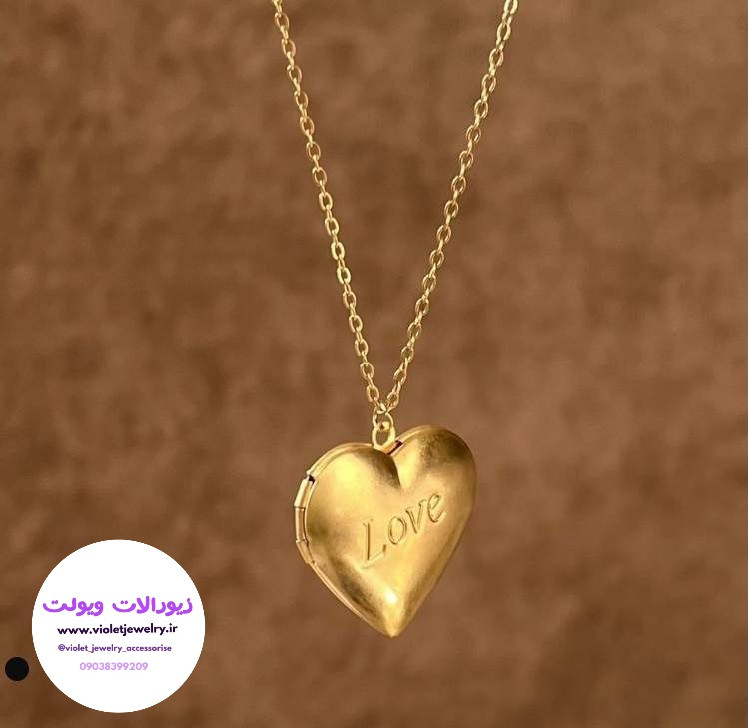گردنبند لاکت لاو Love ❤️ قلبی طلایی استیل مناسب برای هدیه به عزیزانتان 🌹