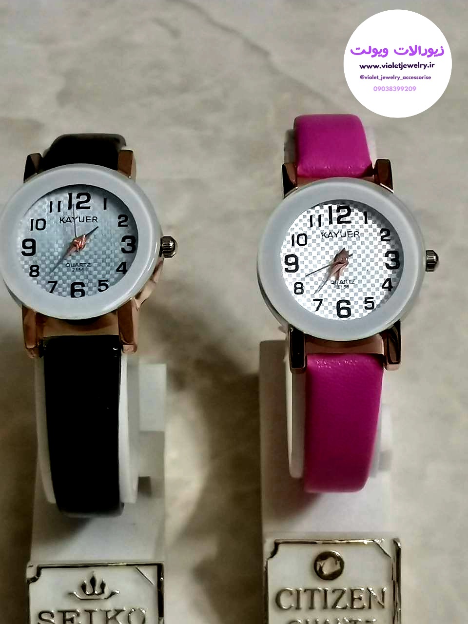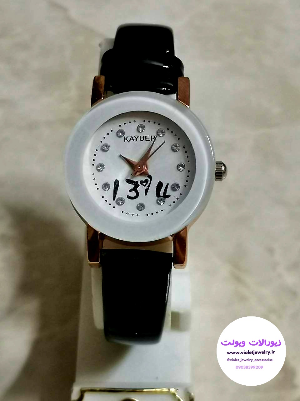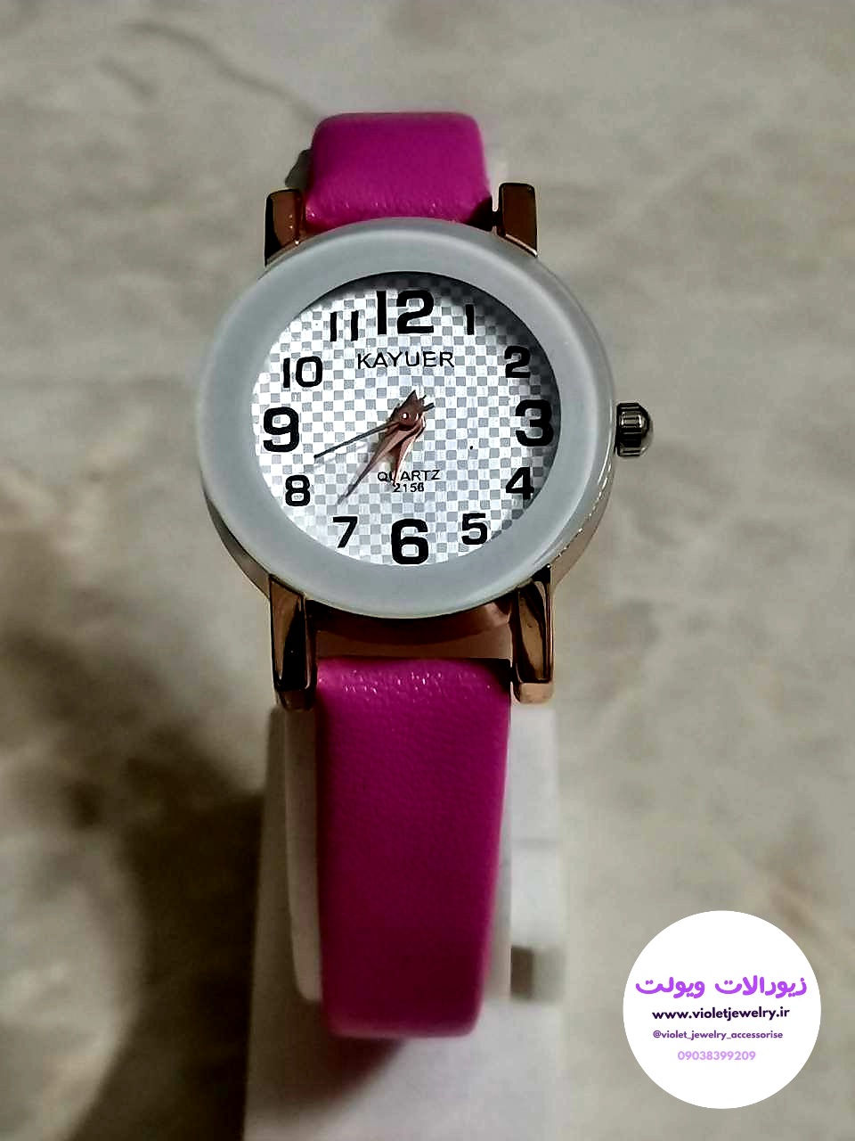 ساعت مچی دخترانه بند چرمی صورتی و مشکی کد ۲۰۵۶