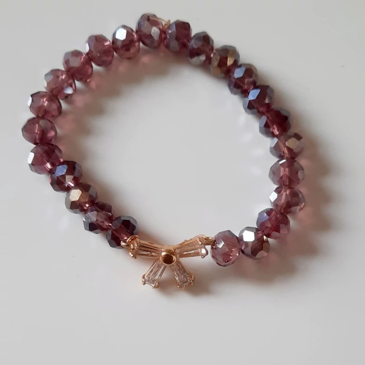 دستبند کریستالی دخترانه پوست پیازی با پلاک نگیندار پاپیون