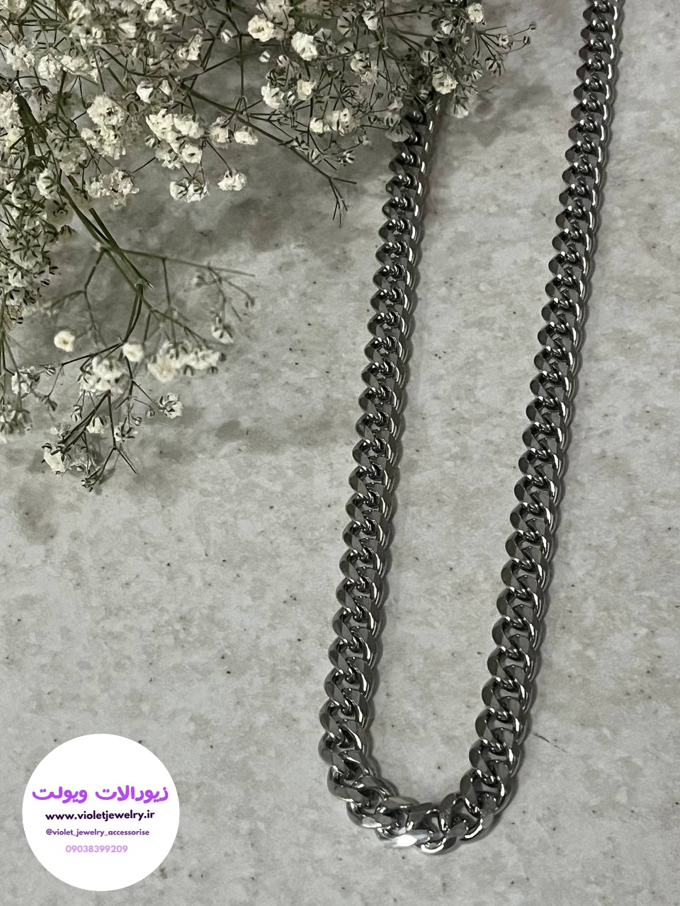 گردنبند کارتیر مردانه استیل ۱۰ میل نقره ای کد ۸۰۲۱