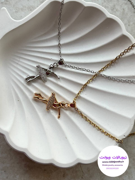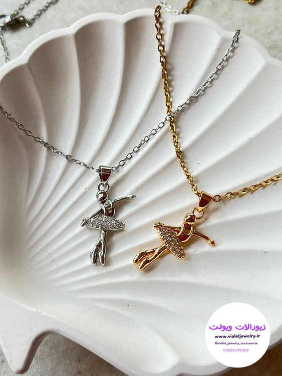 گردنبند دخترانه ظریف طرح دختر بالرین نگین دار کد ۱۲۱۸۴