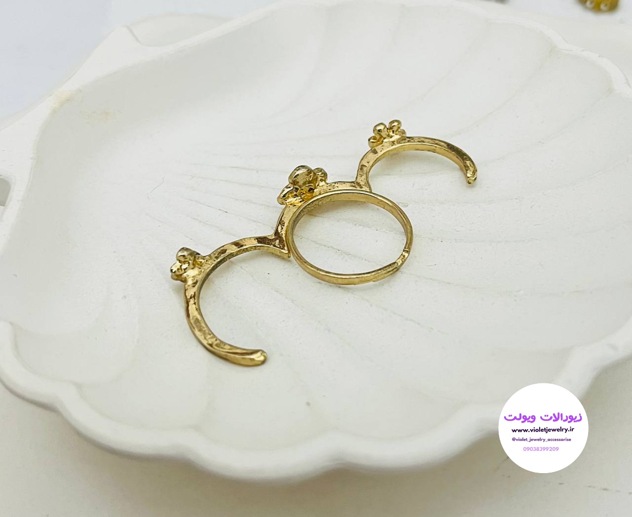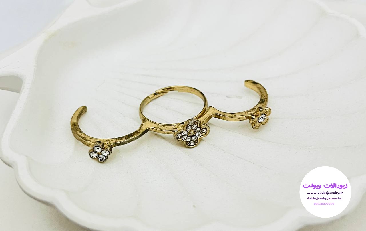 انگشتر ۳تایی طلایی طرح گل نگین دار کد ۲۹۶۲