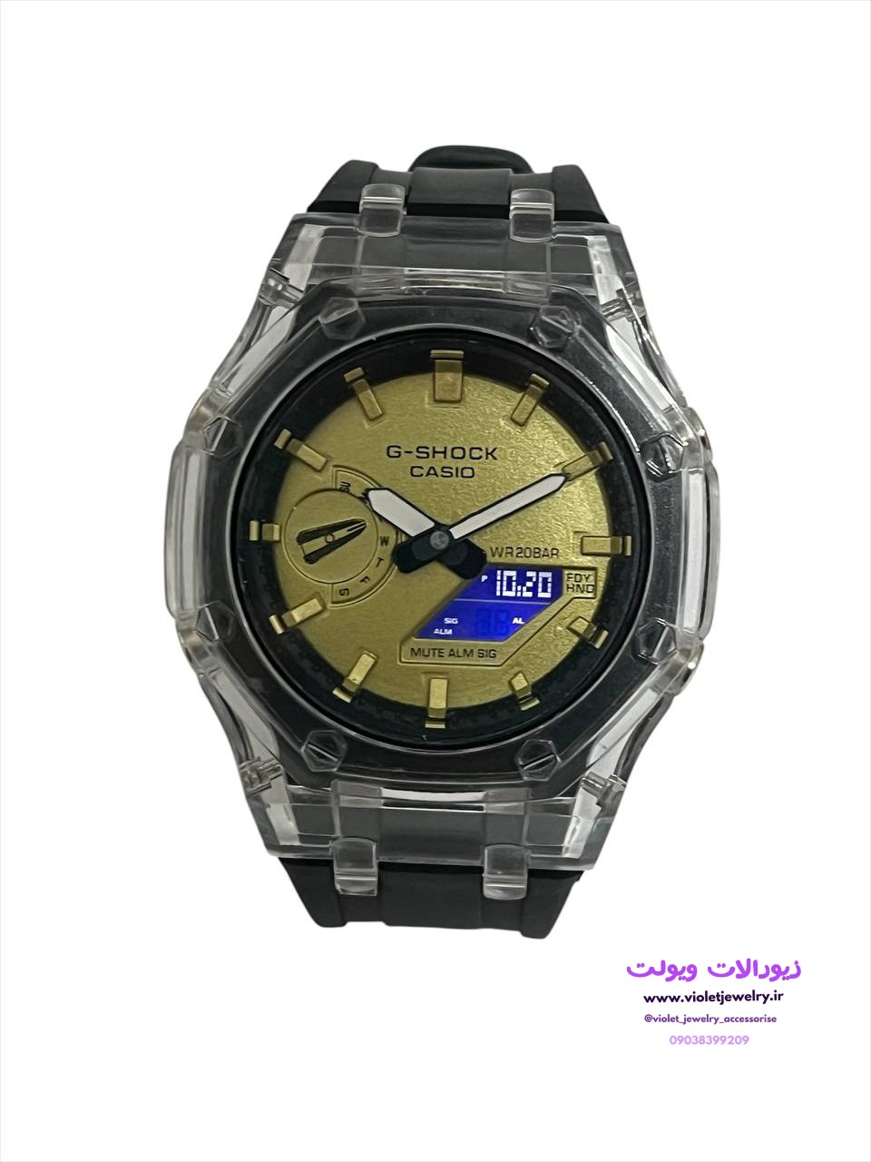 ساعت مچی برند کاسیو مدل G_shock رنگ مشکی صفحه طلایی کد ۲۰۶۱