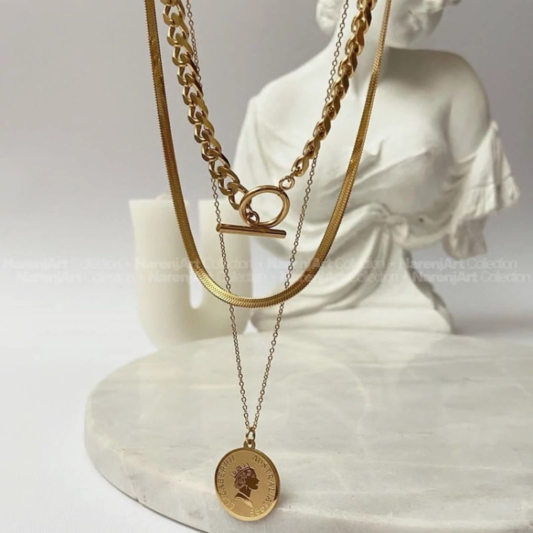 گردنبند زنانه 3 لاین کد 2001 استیل ماری،کارتیر،الیزابت رنگ ثابت