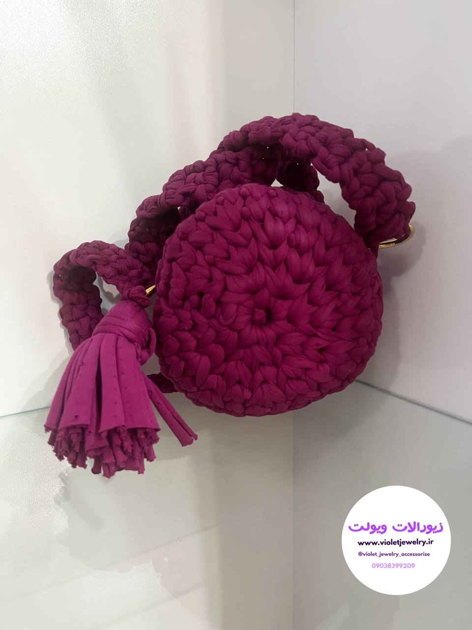 کیف دستی تریکو مدل گرد دستباف آسترکشی شده