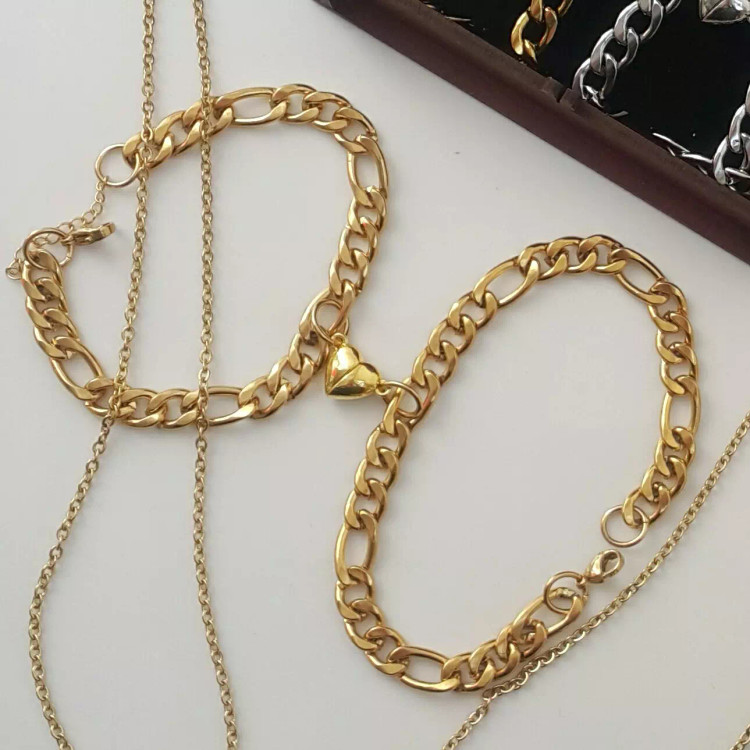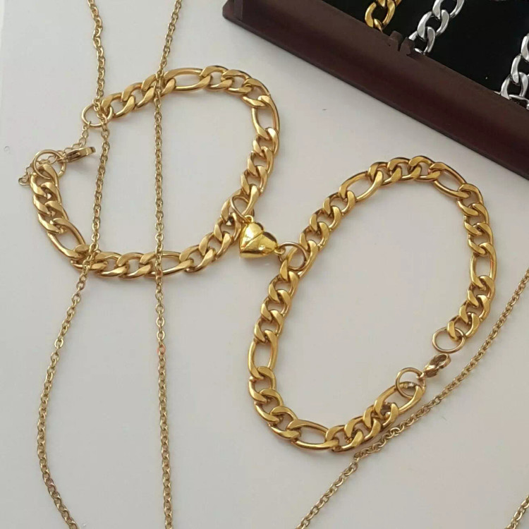 دستبند فیگارو استیل رنگ ثابت با قفل مگنتی قلبی پسرونه و دخترونه ویژه روزعشق