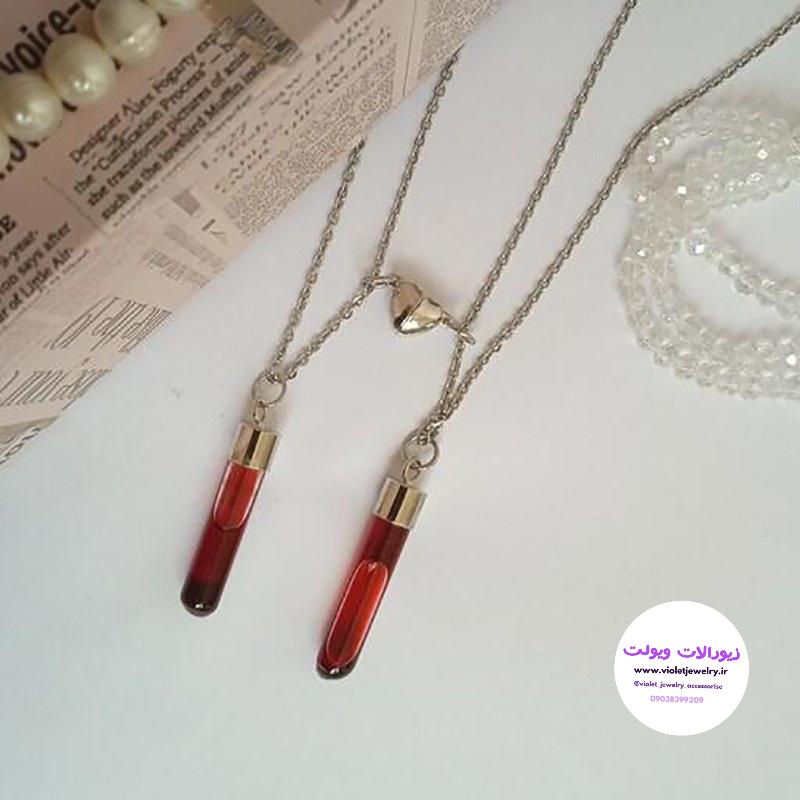 گردنبند شیشه خون با زنجیر استیل مگنتی کد ۱۳۹۶