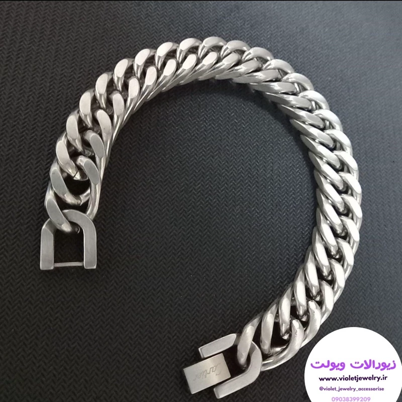 دستبند مردانه استیل کارتیر دوبل پهن و درشت با قفل ساعتی