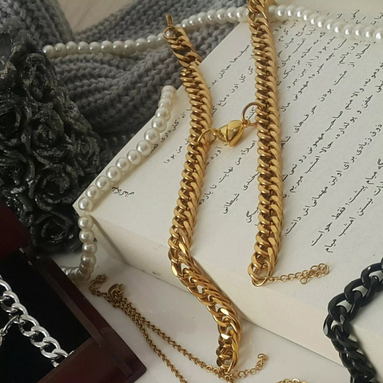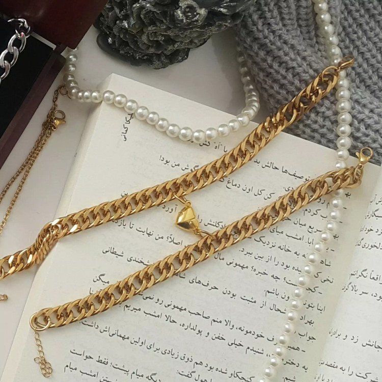 دستبند کارتیر دوبل استیل رنگ ثابت که با قفل مگنتی قلبی شکل بهم وصل میشن و کاری فوق العاده عاشقانه و زیبا هستش