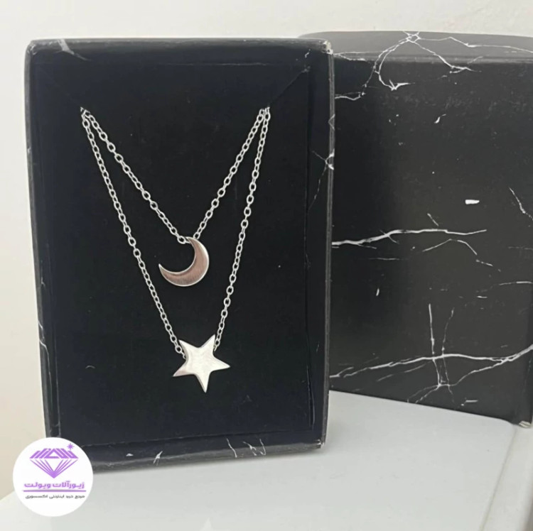 گردنبند زنانه دو لاین مدل ماه و ستاره | کد 2086