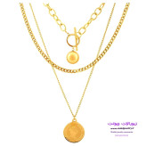 گردنبند زنانه 3لاین کارتیر و سکه الیزابت با قفل t استیل طلایی کد 12128