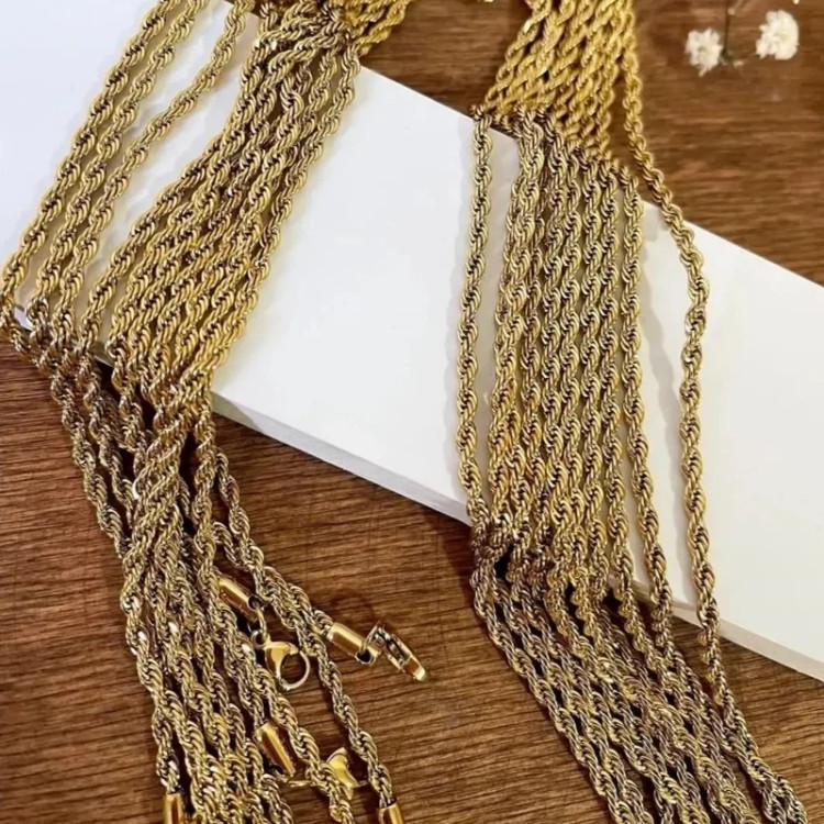 گردنبند زنجیر طنابی پیچی استیل طلایی و نقره ای استیل رنگ ثابت