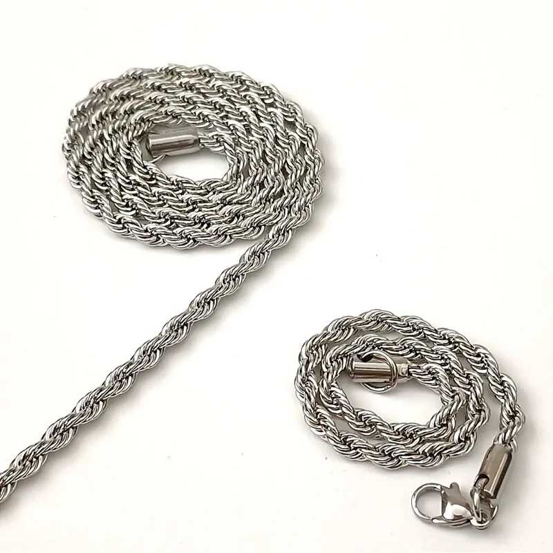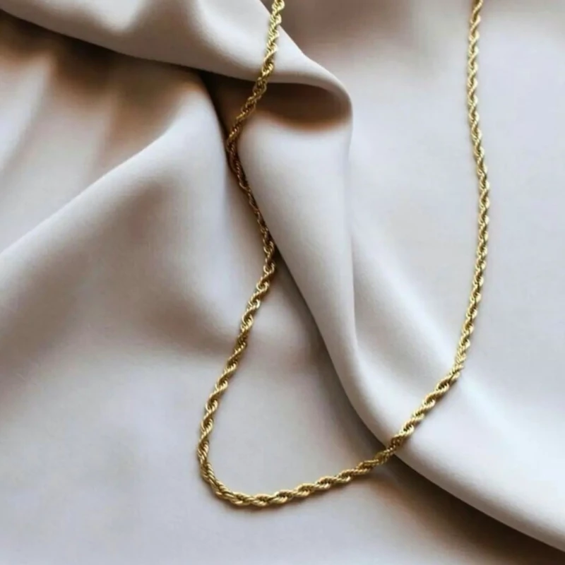 زنجیر طنابی پیچی استیل طلایی و نقره ای 60 سانتی رنگ ثابت و ضد حساسیت