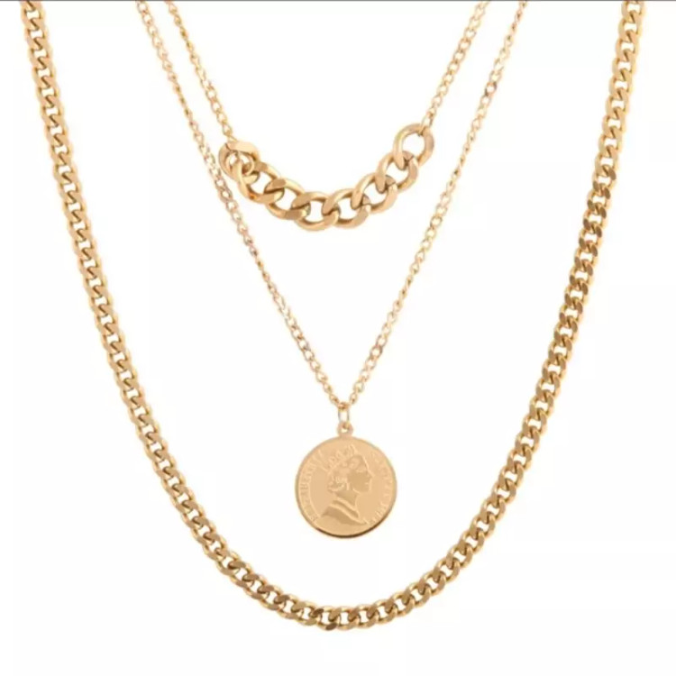 گردنبند زنانه کارتیر الیزابت 3لاین جنس استیل رنگ ثابت ضدحساسیت طلایی