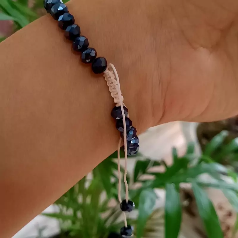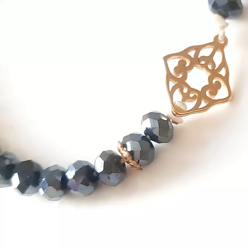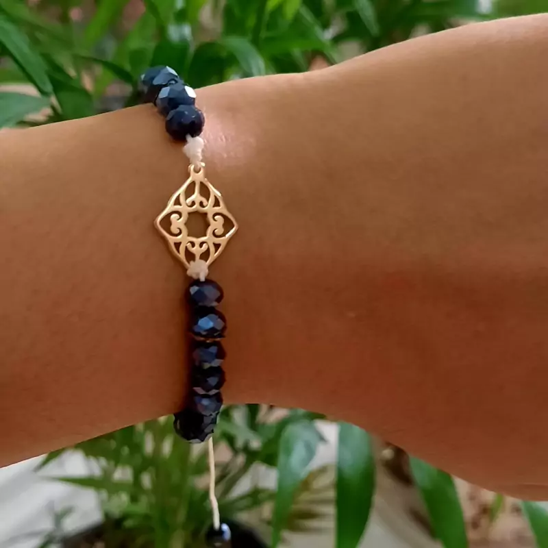 دستبند کریستالی سورمه ای با پلاک طرح اسلیمی استیل فری سایز گره ای