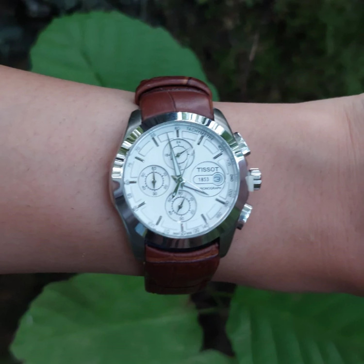 ساعت مچی برند تیسوت سه موتوره بند چرم دخترانه زنانه اسپرت دارای یکسال گارانتی موتور همراه پک جعبه و بگ