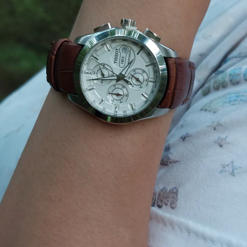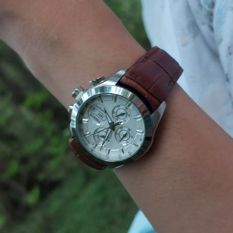 ساعت مچی برند تیسوت سه موتوره بند چرم دخترانه زنانه اسپرت دارای یکسال گارانتی موتور همراه پک جعبه و بگ